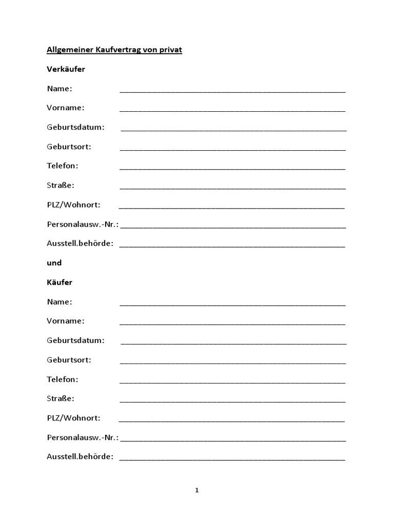 Allgemeiner Kaufvertrag Vorlage